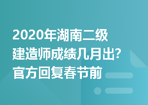 2020年湖南二级建造师成绩几月出?有考生咨询湖南省住房和城乡建设厅,解答如下:我省二级建造师考试成绩大约在春节前公布!下方免费预约短信提醒,及时知晓2020年湖南二建成绩!2020年湖南二建成绩查询方式:网上查询2020年湖南二建成绩查询官网:湖南人事考试网2020年湖南二建成绩查询证件:姓名+身份证号2020年湖南二建查分入口,快速查分成绩公布后,湖南人事考试网(http://link.233.com/17712)和市州人事考试网站将及时公布需资格审核人员名单和资格复核时间、地点及相关要求。查看更多>