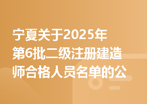 根据《注册建造师管理规定》(建设部令第153号)、《宁夏回族自治区二级建造师注册实施办法》(宁建建〔2007〕第120号)和《关于二级建造师执业资格实行电子化申报审批及二级建造师注册证书电子化的通知》(宁建规发〔2019〕4号),经审核,29人符合二级建造师初始注册条件,63人符合二级建造师增项注册条件,575人符合二级建造师延续注册条件,259人符合二级建造师重新注册条件,现准予注册,特此公告。附件:1.符合二级建造师初始注册条件的人员名单2.符合二级建造师增项注册条件的人员名单3.符合二级建查看更多>
