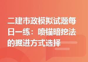 二级建造师考试备考过程中,刷题可以让你扩大知识储备,接触更多题型,能让你加深巩固知识点,大量的题海中必定有做过的,没做过的,再做一遍有助于加深理解并且对该类型题目产生警觉,而没做过的题反复做也可以让你对知识点记忆更深。【更多市政工程>>每日一练】【章节题】【模拟试题】【历年真题】遇到不会的题扫码进【题搜搜】小程序找答案建议收藏~二建市政模拟试题每日一练:喷锚暗挖法的掘进方式选择浅埋暗挖法中,适用于多层多跨的是(  )。A.中洞法B.正台阶环形开挖法C.柱洞法D.CD工法查看答案参考答查看更多>