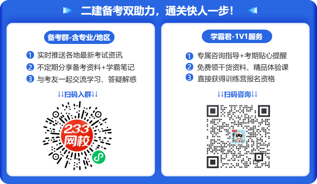 投资自己永远不亏!233网校二建课程、AI题库、教辅资料助你高效通关。👉 [去下单购课]