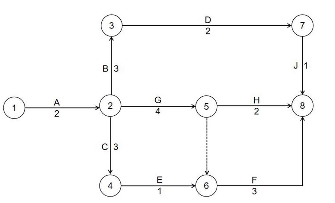 答案解析: 最早开始时间=紧前工作的最早完成时间的最大值,max{2+3,5+2,3+4}=7