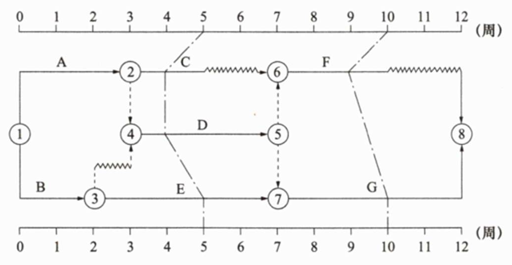 1)双代号时标网络计划是以时间坐标为尺度编制的网络计划。以实箭线表示工作,以虚箭线表示虚工作,以波形线表示工作的自由时差。