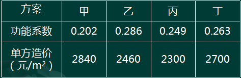(2)功能评价。主要比较各项功能的重要程度,计算各项功能的评价系数。其方法主要有:0~1评分法、0~4评分法、环比评分法等。