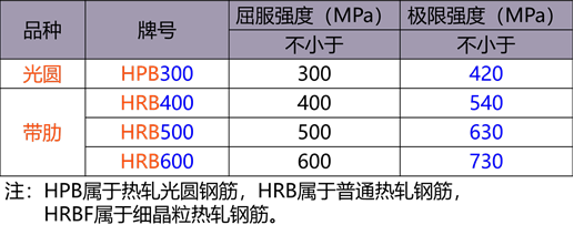 ①HRB400、HRB500、 HRB600分别以4、5、6表示,
