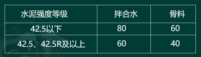 DE选项:采用矿渣硅酸盐水泥、粉煤灰硅酸盐水泥、火山灰质硅酸盐水泥、复合硅酸盐水泥时,不应小于设计混凝土强度等级的40%。