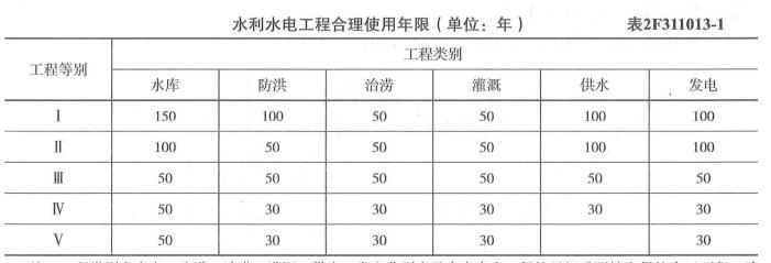 1.水利水电工程合理使用年限,应根据工程类别和等别按下表确定。对综合利用水利水电工程,当按各项目确定的合理使用年限不同时,应按最高年限确定。