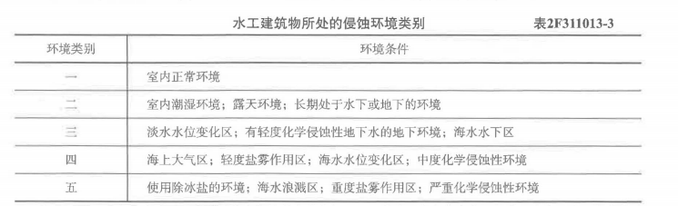 1.水工建筑物所处的侵蚀环境条件:一(室内正常环境)、二、三、四、五共五类。