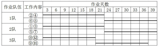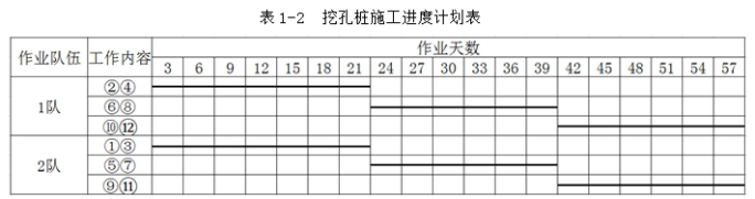 1、画出按三个施工队同时作业的横道图,并计算人工挖孔桩施工需要的作业天数。