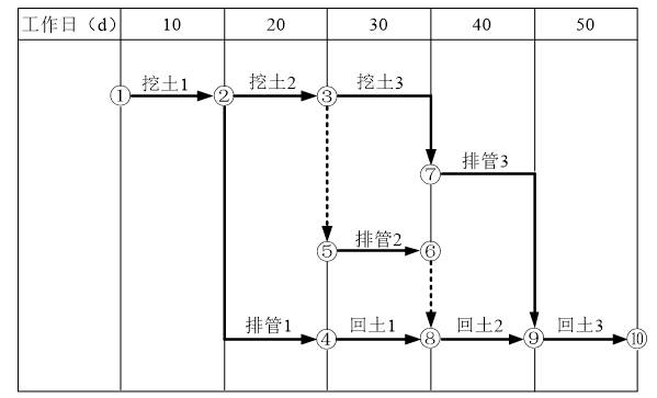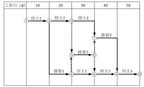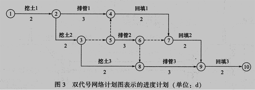 (2)排管1和排管2的施工关系错误,应是排管1→排管2。