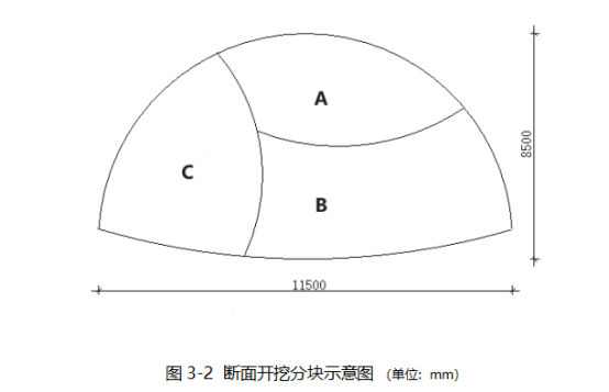 下载某城市浅埋暗挖隧道长550m,沿线下穿道路、管线等市政设施。隧道设计为马蹄形断面,复合式衬砌结构由外向内依次为初期支护、X、二次衬砌,如图3-1所示隧道开挖断面尺寸为11.5mx8.5m,断面开挖分块如图3-2所示。全线设三座竖井相向掘进施工。施工过程中发生如下事件: