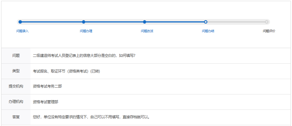 问:二级建造师考试人员登记表上的信息大部分是空白的,如何填写?