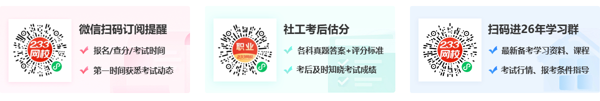 考试结束后,在233网校可及时查看社会工作者考试真题答案,提前估算分数,做到心里有底,后续有准备。