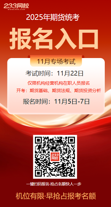 根2025年11月期货专场报名时间11月5日-7日,每日9时-17日。准考证打印时间11月18日10:00-22日16:00,考试时间11月22日。仅限期货经营机构在职人员报名。