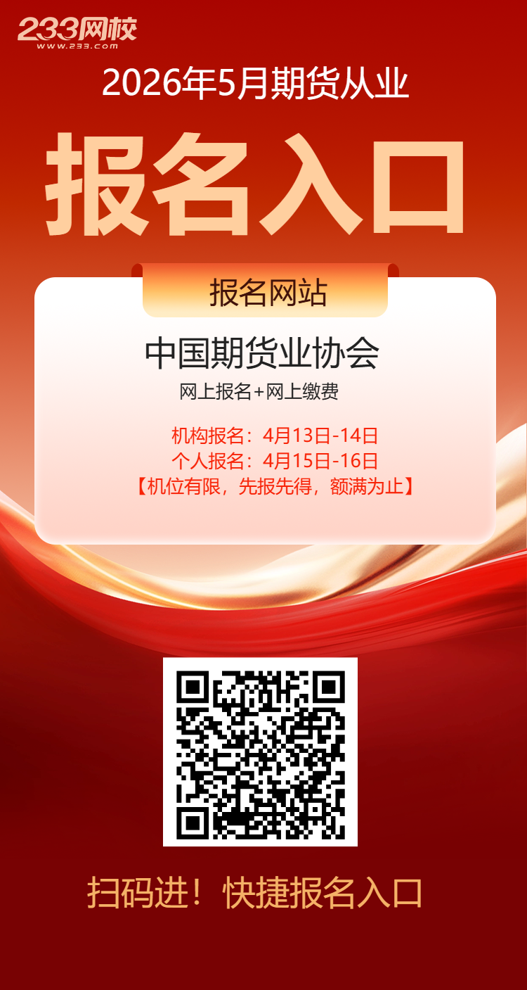 目前2026年5月期货从业资格全国统考通知暂未发布,考生可在233网校订阅免费报名提醒,233网校老师将于官方公布时间后即时发送提醒,以便大家不错过每一个考期!