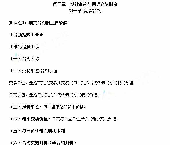 2017年期货从业《期货基础知识》第三章:期货合约条款