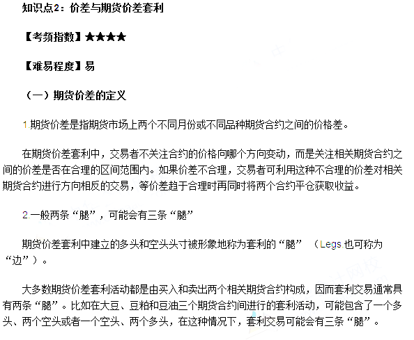 2017年期货从业《基础知识》第五章:价差与期货价差套利