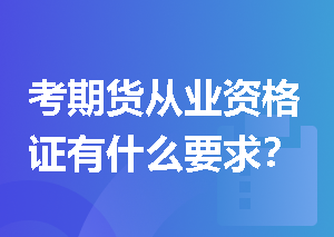 考期货从业资格证有什么要求?考期货从业资格证有四项报考要求,报考期货投资分析有五项报考要求,满足就可以报考。一起来看看期货从业资格考试报名条件已发布。详情如下:(一)报名参加期货从业资格考试的人员,应当符合下列条件:1.年满18周岁;2.具有完全民事行为能力;3.具有高中以上文化程度;4.中国证监会规定的其他条件。在线测试你是否符合报考条件>>(二)报名参加“期货投资分析”考试的人员,应当符合下列条件:1.年满18周岁;2.具有完全民事行为能力;3.已取得期货从业人员资格考试合格证;查看更多>