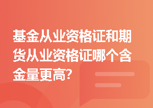 基金从业资格证和期货从业资格证哪个含金量更高?其实基金和期货两个证书都是进入各自行业的必备证书,含金量是入门级的,含金量差不多,但也是不可或缺的,因此各位考生想要知道证书含金量的区别首先你得知道你想去哪个行业,期货从业资格证:首先,期货行业人才缺口较大,人才需求量持续增长。其次,金融期货/投资业在全行业平均年薪排行榜中位居前列。随着我国经济建设发展步伐的加快,在国际市场的影响越来越重要,我国期货市场的发展潜力不可估量。期货从业资格证也是我们进入期货行业的必备证书,考一个总没错。【超全资料包合集】查看更多>