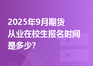 2025年9月期货从业在校生报名时间9月8日-9日,每日9时至17时。期货从业考试报考名额有限,额满即关闭报名入口,注意提前注册好账号,定好闹钟,报名入口开通及时报名。点击进入>>2025年期货资格考试报名入口一、期货从业报名考试时间1、时间安排考试时间:9月27日。个人报名时间:9月8日至9日,每日9时至17时。准考证打印时间:9月23日10:00至9月27日16:00。成绩查询时间:考试结束日起7个工作日后。本次考试可报考科次数量有限,报满即止。2、考试科目期货基础知识、期货法律查看更多>