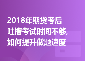 期货从业资格考试试题均为客观选择题,每科试题量为140道,满分100分,单科考试时间为100分钟。100分钟内要回答140道题目?平均每到题目只有0.714285……分钟的思考和答题时间!如果你对期货从业知识掌握的不够牢固,而且又是在机考题库中随机抽取考题组卷的模式下,你觉得你OK吗?期货从业机考原题考点分析,点击进入>>  看看考后大家的反馈是怎么样?    2018年9月期货从业资格考后吐槽贴,点击进入》》  做题速度慢,题没答完,如何才能提升做题速度?  1、做题训练  大查看更多>