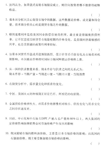 2013年期货从业资格考试投资分析模拟试题及答案汇总