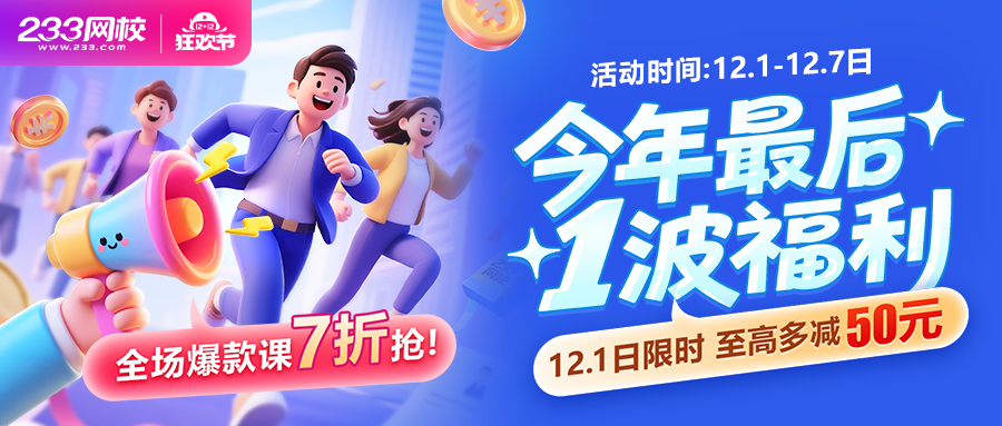 福利末班车:25年最后一波全站大促福利,下一波要等到618才有这个价格!别再犹豫,立即上车,一鼓作气,明年拿下证书!别让拖延一直持续,成为遗憾!