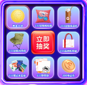 4️⃣下单抽奖:大促期间,下单还可抽233周边豪礼,如黄金大饼、保温杯、野餐垫、月亮椅等...