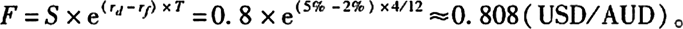 外汇期货的标的资产为外汇。一般而言,持有收益率是该外汇发行国的无风险连续利率rF。本国无风险连续利率记为rD。在直接标价法下,远期汇率Ft和即期汇率St的关系表示为∶Ft=Ste(rD-rF)(T-t)