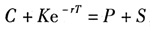 具有相同行权价格与期限的欧式看跌期权与看涨期权的价格之间满足看跌 - 看涨平价公式。