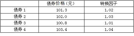 答案解析: 最便宜可交割国债是指在一揽子可交割国债中,能够使投资者买入国债现货、持有到期交割并获得最高收益的国债。寻找最便宜可交割债券的一种可靠方法是找出隐含回购率最高的国债,另一种方法是基差法。对于交割日相近的国债期货合约来说,最小基差的债券往往是最便宜可交割债券。四种债券的基差计算如下,债券1:101.3-(99×1.02)=0.32;债券2:102-(99×1.03)=0.03;债券3:100.8-(99×1.01)=0.81;债券4:103.4-(99×1.04)=0.44。因此,最便宜可交割券为债券2。