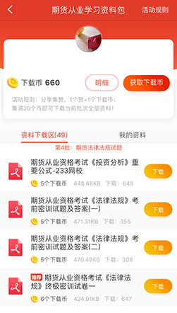 期货学霸资料包,小编汇总期货学霸压箱底的精选资料,全部上传在资料下载模块,下载APP就可以把资料放到口袋里随时随地看一看。包含:历年真题,备考经验,考点精华,模拟套题,密训资料,速记口诀等。期货法律法规试题下载