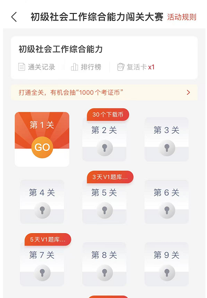 答题闯关:设置10-20个关卡,每关包含10道考点题,闯关成功可获得相应奖励;