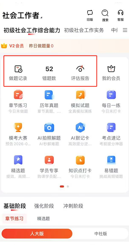 作为社工考试的专业备考平台,它的刷题功能完全贴合不同基础考生的复习节奏,好用又省心,核心优势一目了然: