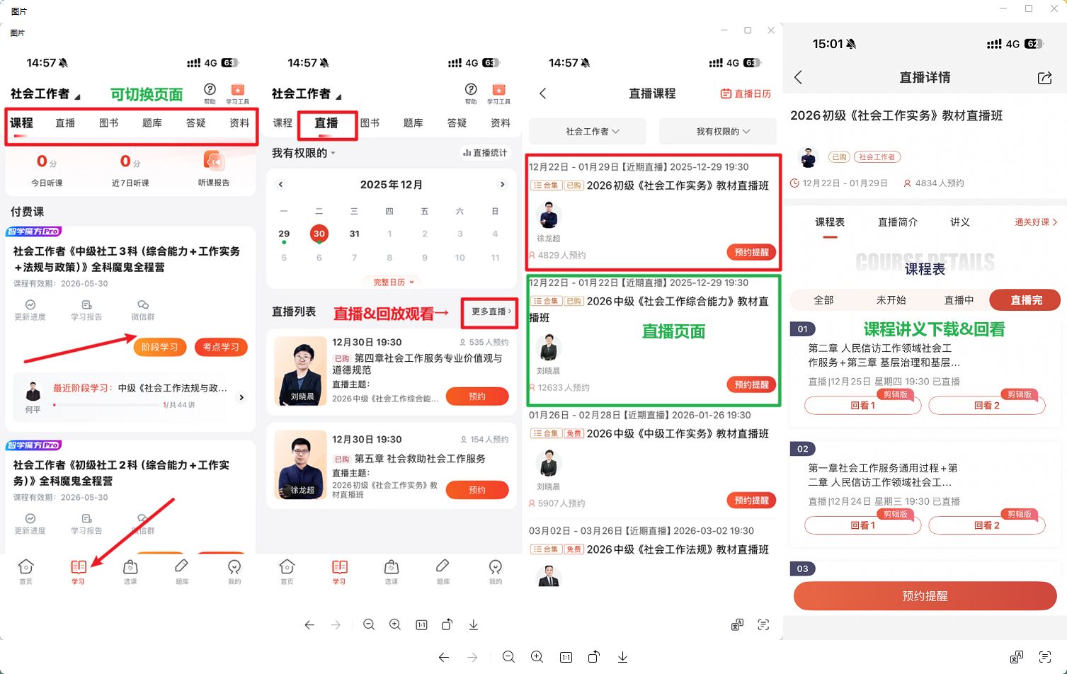 3、离线学习:支持题库、课程离线下载,无网络也能刷题、听课,充分利用碎片时间,备考不受场景限制。