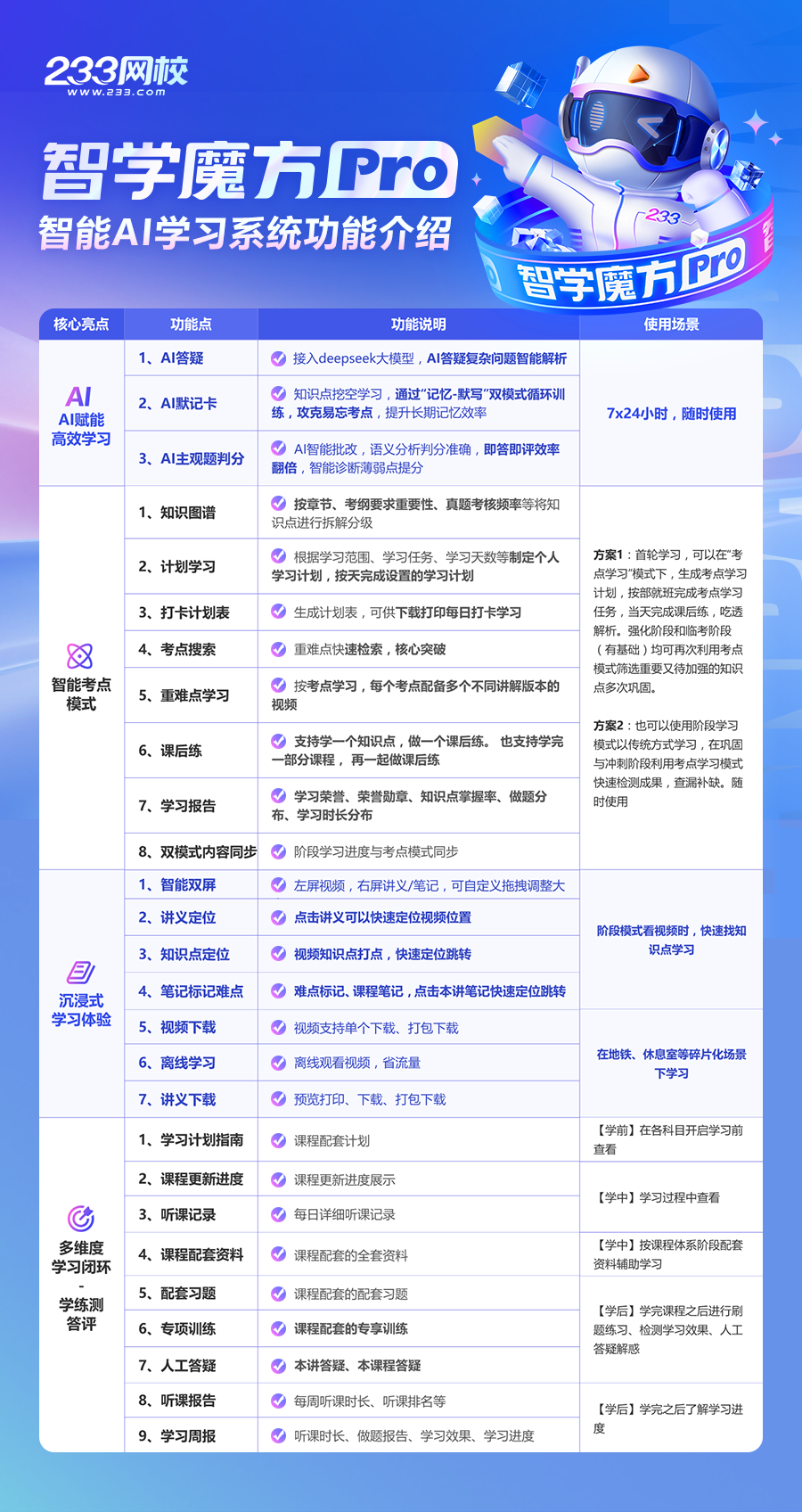 区别于传统刷题软件,233网校APP搭载智学魔方系统,用AI技术为备考提速,解决“记不住、练不准、答不好”的难题: