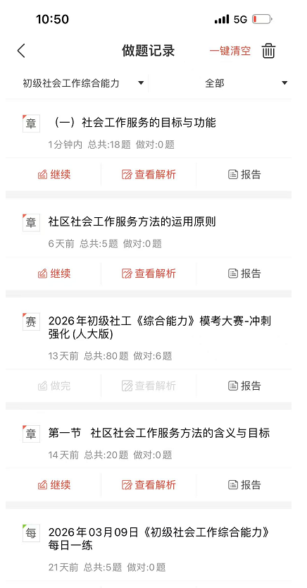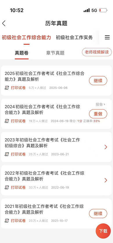 实战演练・历年真题:收录近5年社工考试真题,支持在线作答,还原真实考场环境,训练答题速度与题感,精准把握命题规律。