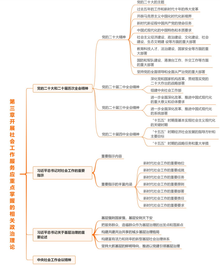 全新章节,新增党的二十大和二十届历次全会精神、习近平总书记对社会工作的重要指示、习近平总书记关于基层治理的重要论述、中央社会工作会议精神基础章节,属于记忆了解型考点,难度不大。