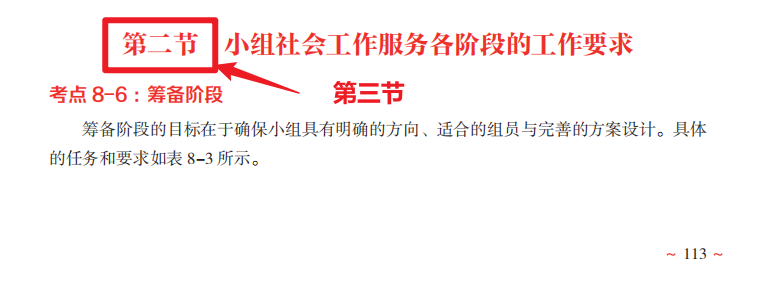 现修改为“第三节 小组社会工作服务各阶段的工作要求”