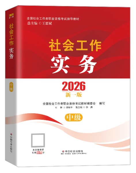 2026年社会工作师考试教材已于12月出版发行,各科目教材将进行全新改版,目前社会工作师考试官方教材包含两个版本:中国社会出版社和中国人民大学出版社,以下为《社会工作实务(中级)》考试指导教材: