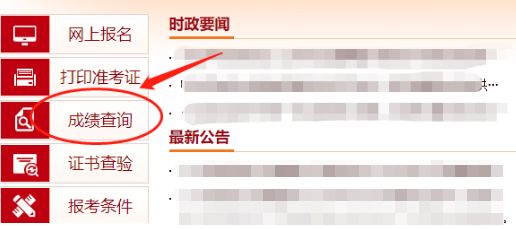 第一步:进入中国人事考试网,点击左侧成绩查询栏目,进入成绩查询页面。