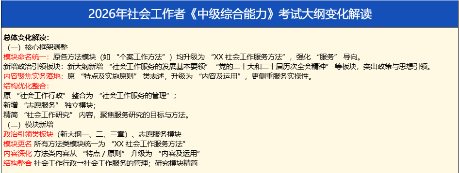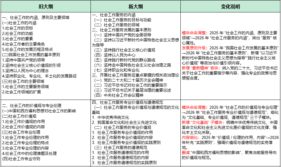 因篇幅有限,想获取2026年社会工作师考试新大纲变化及pdf版,可以加入【大纲解读集训营】获取!
