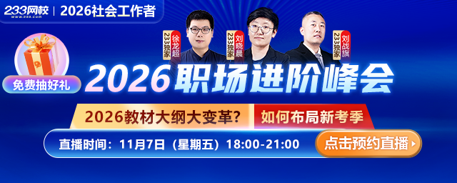 我们特别邀请了233网校三位大咖老师:刘晓晨、徐龙超、刘战旗!他们将用专业的视角和丰富的经验,为你深度剖析社工考试的新趋势、新变化,每一句话都是干货满满!
