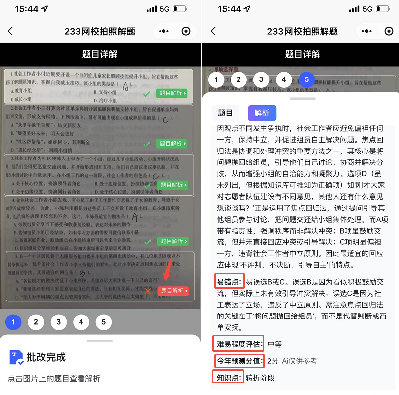 AI立即识别,并提供完整解析步骤,阐明每个答案的解读(耗时5秒)