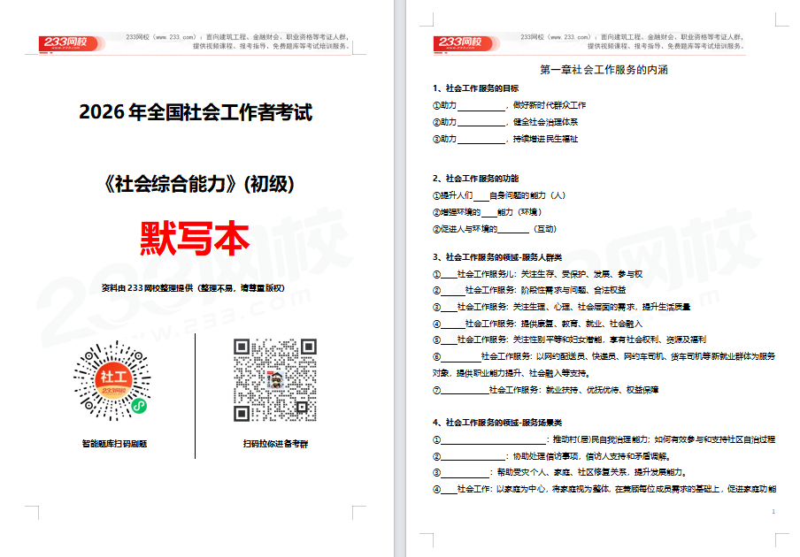 备考社工考试的小伙伴们,谁还在为记不住知识点、做题抓不住重点而焦虑?谁还在对着几百页教材无从下手,浪费时间却收效甚微?今天,重磅福利直达——社工默写本免费送!