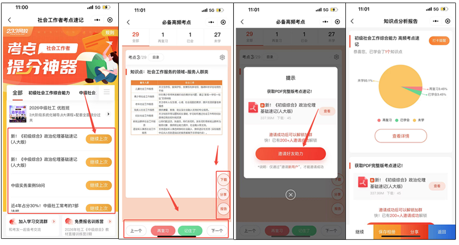 【下载】:当你学完将近50%的高频考点后,只需邀请1位好友助力,即可解锁剩余的知识点,让你的学习之路更加畅通无阻。而当你学完所有考点或想暂时休息时,只需点击右侧“下载”按钮,即可轻松获取PDF完整版考点速记,让你随时随地都能温故知新。