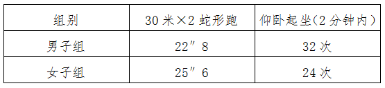 体能测试标准为: