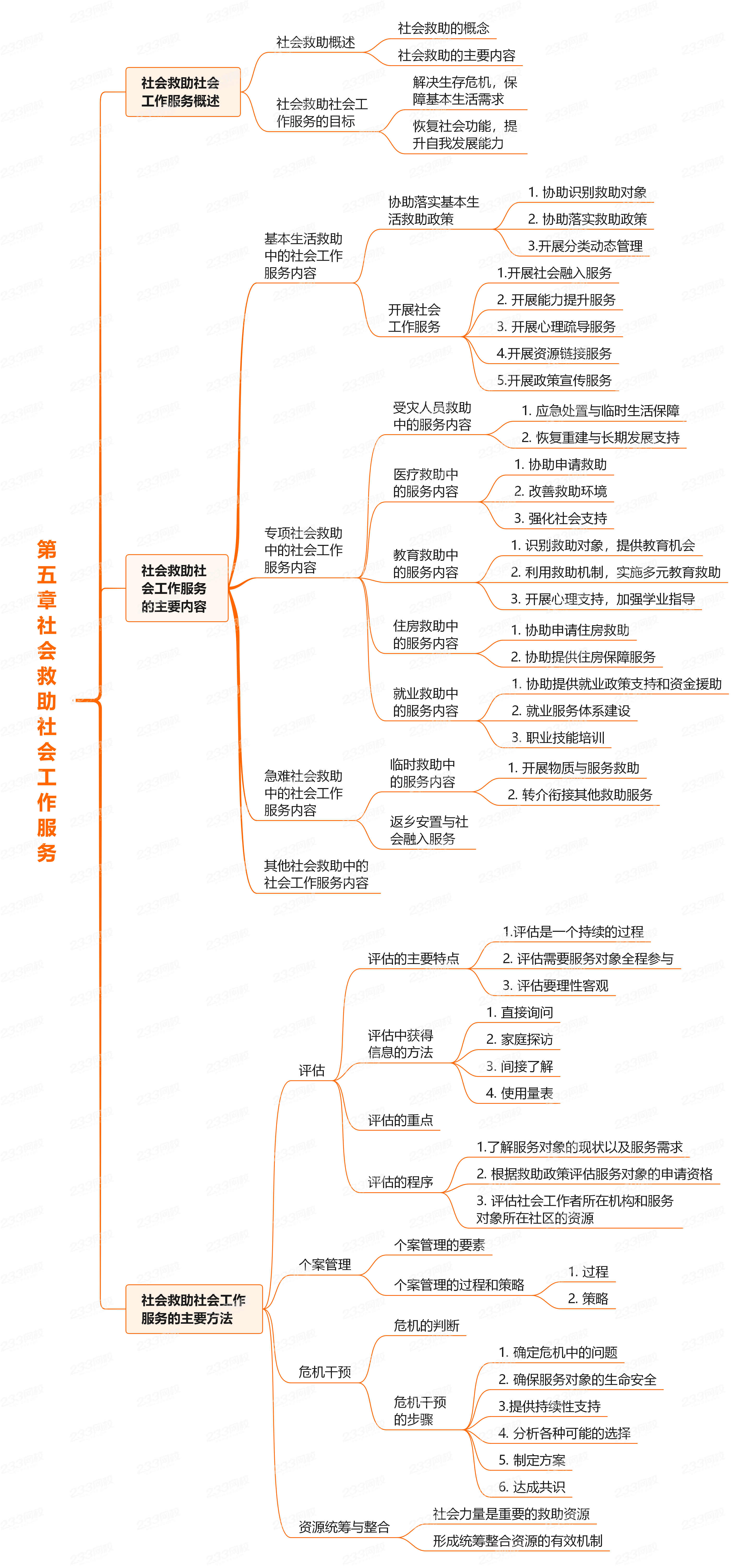 本章政策性的内容较多,考生在复习本章时既要熟悉社会救助领域的知识,又要了解社会工作的各种方法。重点理解掌握基本生活救助、专项救助、急难救助的社会工作服务内容及评估、危机干预、资源统筹与整合、个案管理等方法。