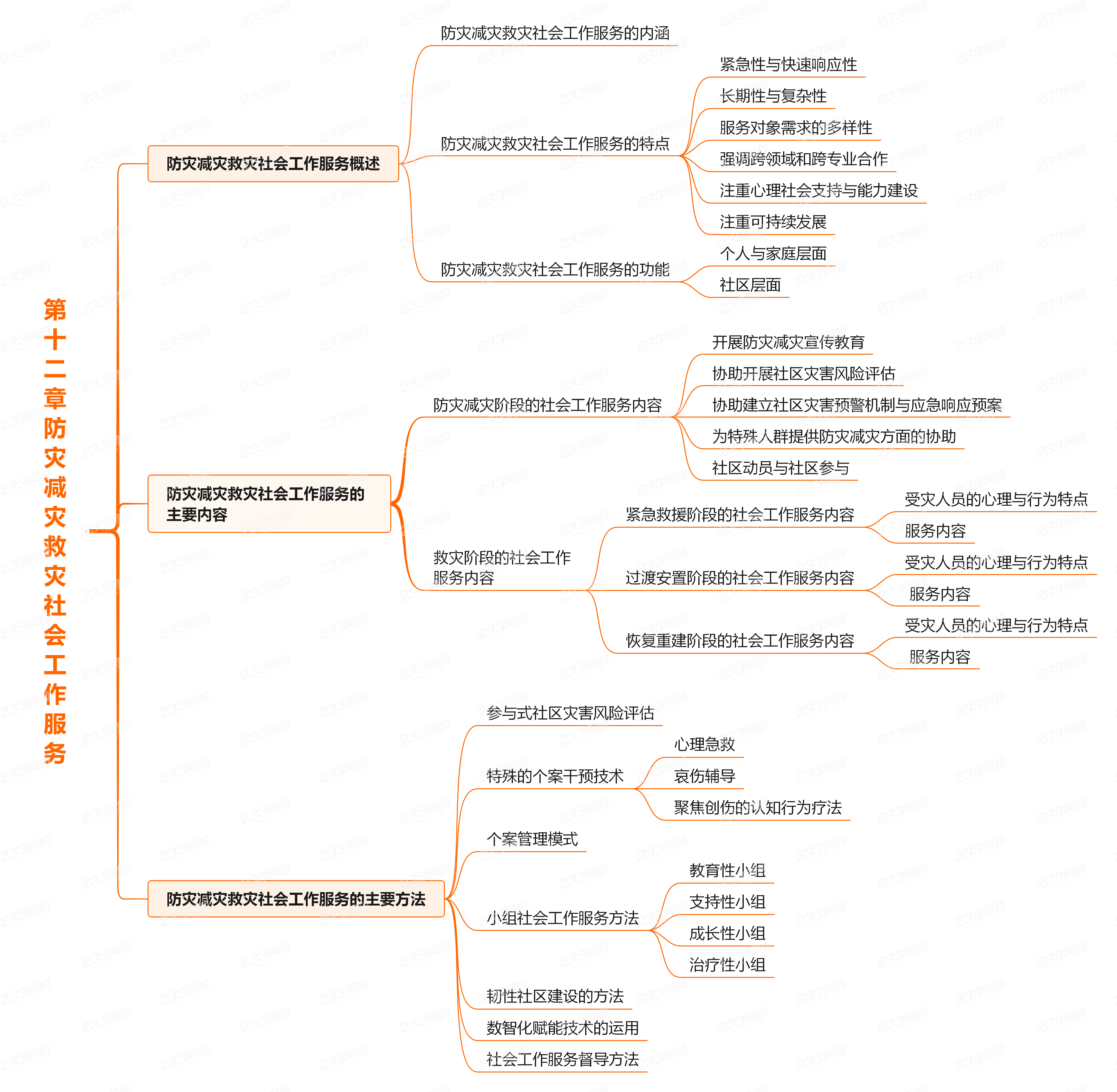 新增章节,也是社会工作的重点实务领域,需要掌握受灾人员心理和行为特点以及对应介入的内容和方法。