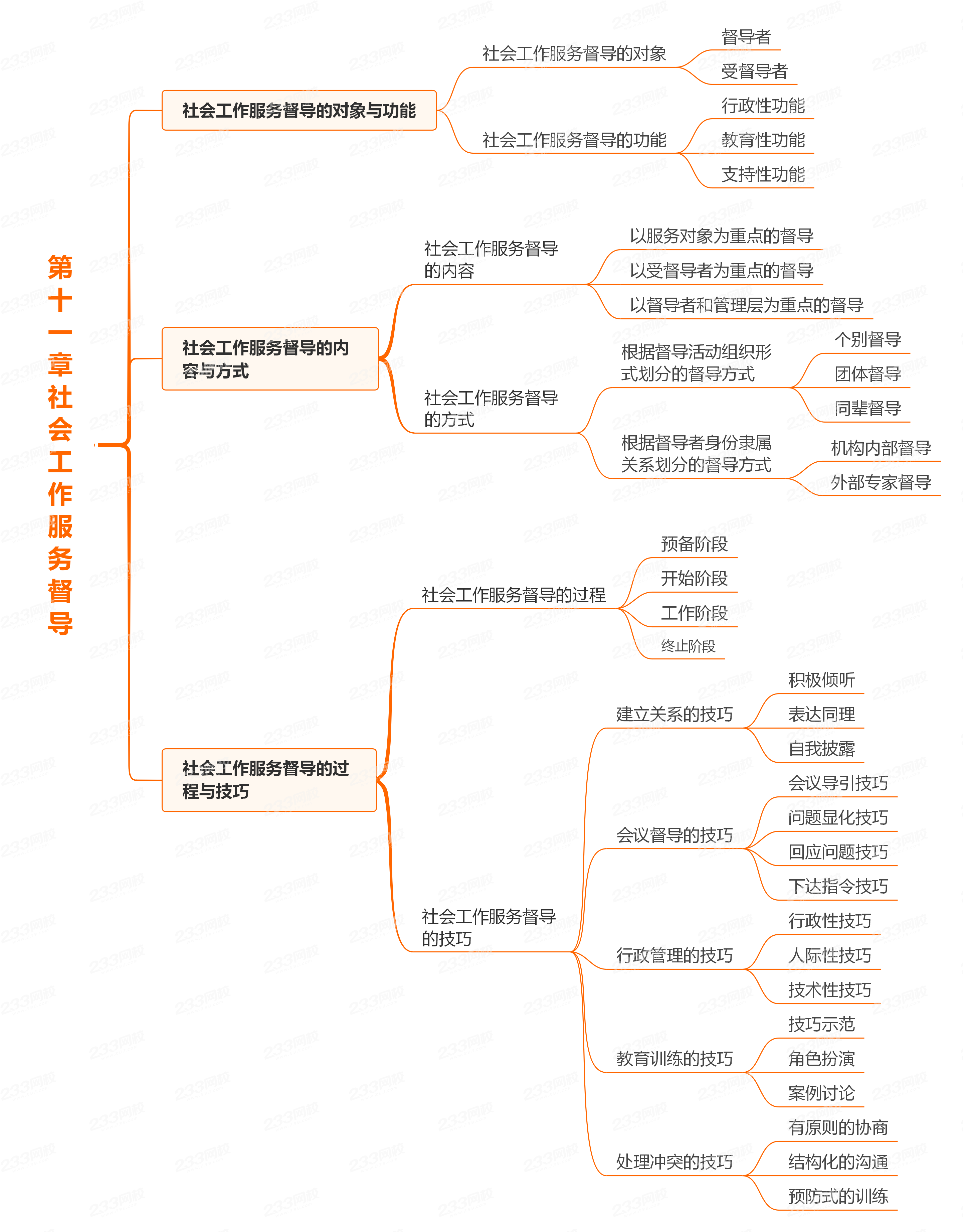 本章为中级综合独有的章节,涉及社会工作服务督导的对象与功能、内容与方式、过程与技巧。