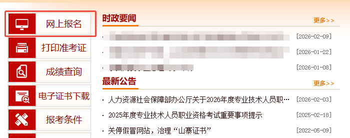 ①进入中国人事考试网,选择【网上报名入口】进入登录页面。